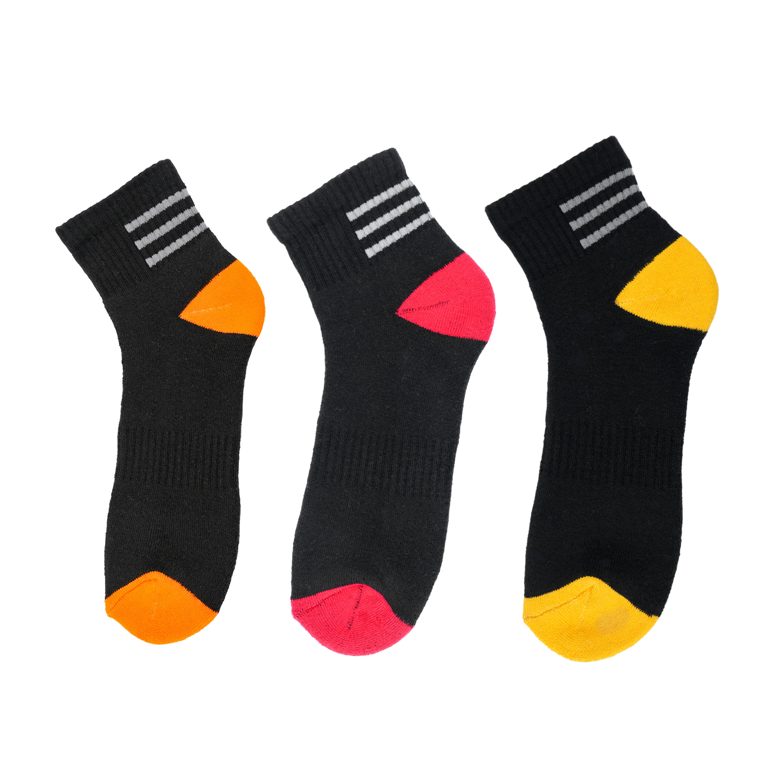 White Leaf Men’s Sneaker Full-Terry Low-Cut Socks (7 cm length) provide maximum comfort and support with full cushioning. Made from 77% cotton, 21% nylon, and 2% spandex, these socks offer a breathable and soft fit. The full-terry construction ensures a cushioned footbed, perfect for all-day wear. Featuring a stylish black combo design with a pop of color at the heel and toe, this set includes three pairs in free size to fit most foot sizes comfortably. These socks are ideal for sneakers, offering both comfort and style for any activity.